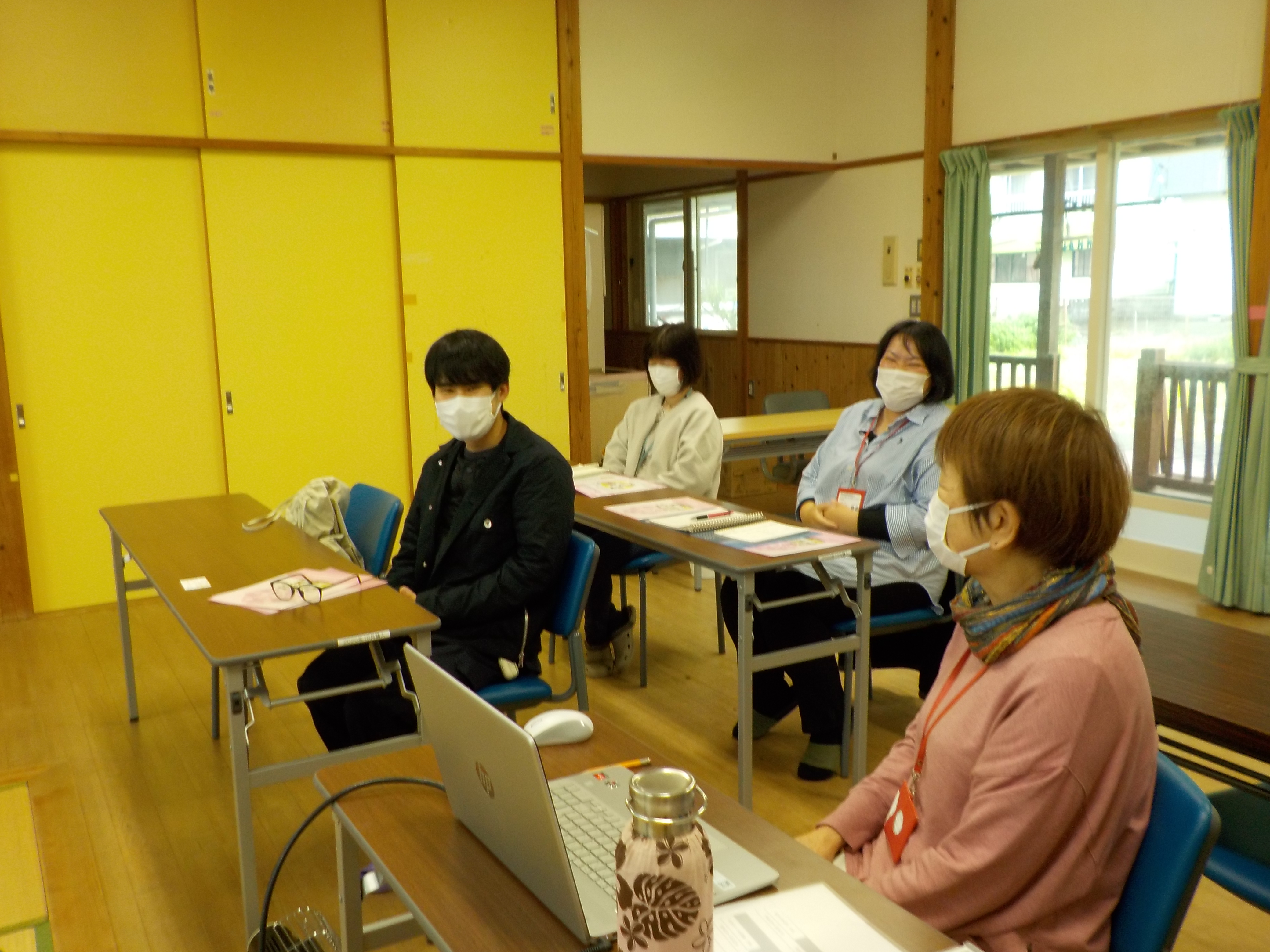 今年度も、実習中の関西医科大学の学生さんを受け入れ、CoCoてらすの取り組みや土佐清水市の実情を伝えています。 新入社員も一緒にオリエンテーションを聞きました。 この後、あったかふれあいセンターの体操に元気に参加してくれました。