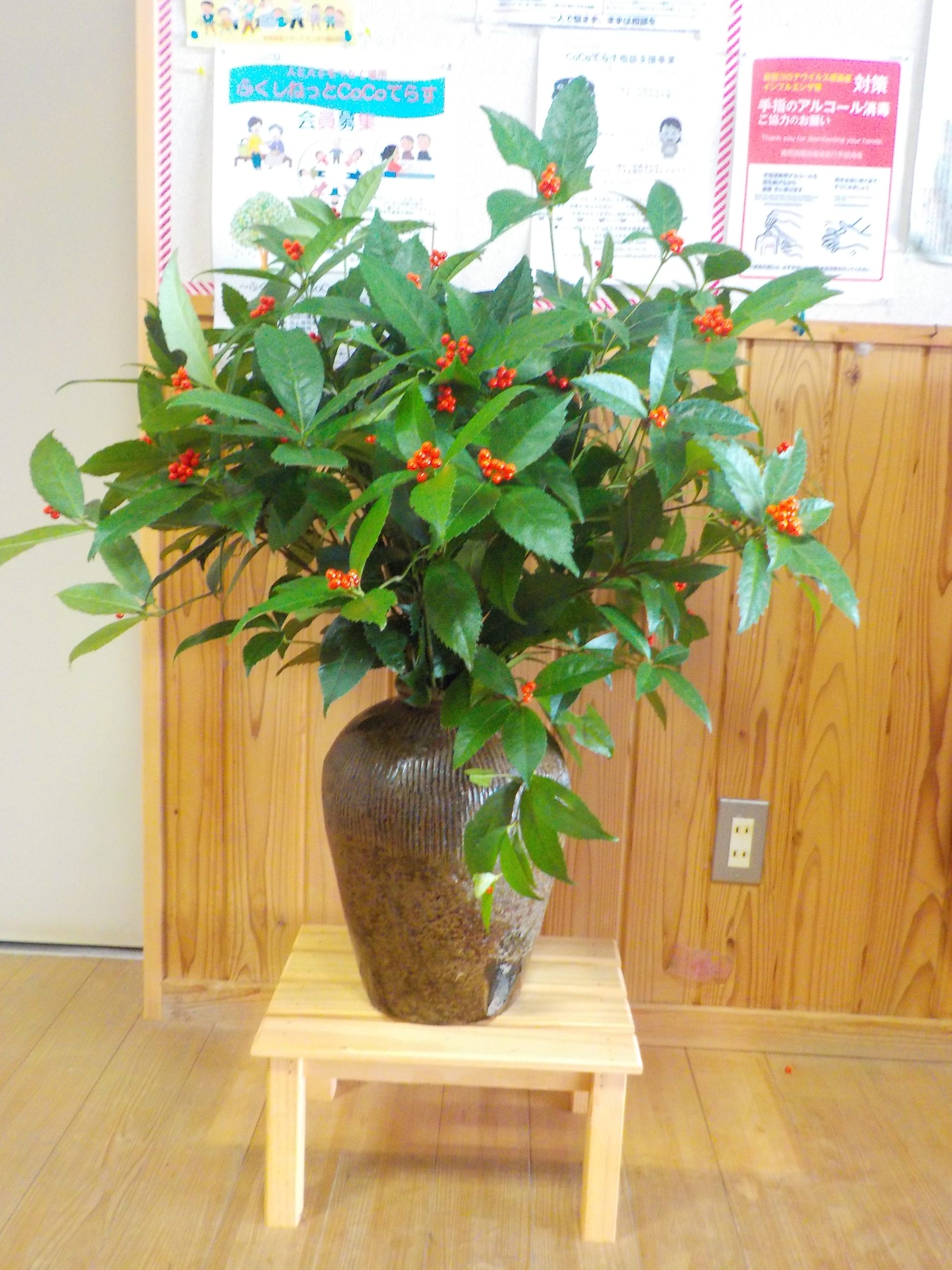 今年もふくしねっとCoCoてらすの会員の方から、立派なセンリョウをいただきました。 センリョウの赤い実を見ると、今年もそろそろ終わるなと感じますね。 玄関入口に飾ったこのセンリョウを見ながら、今年の残り3週間を頑張ります!