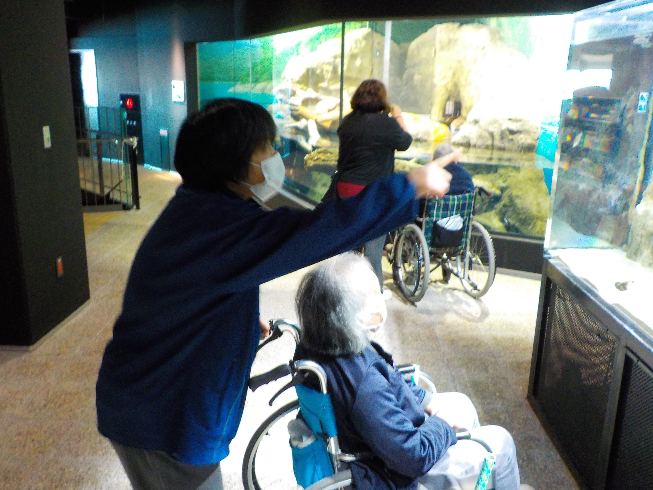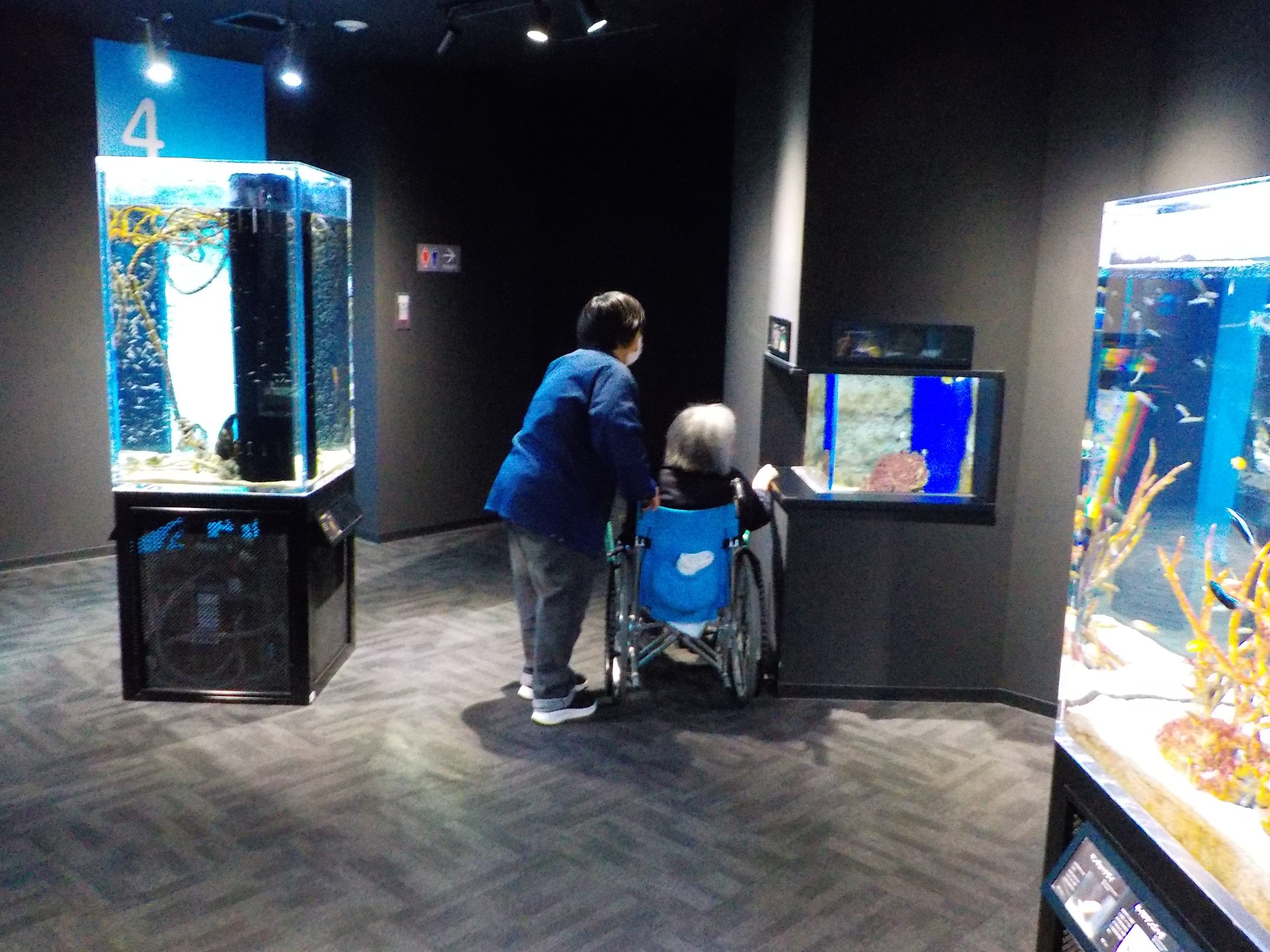 12/13(水)、ケアハウスひだまり入居者の方の外出ボランティアとして、足摺海洋館 SATOUMIに行ってきました。