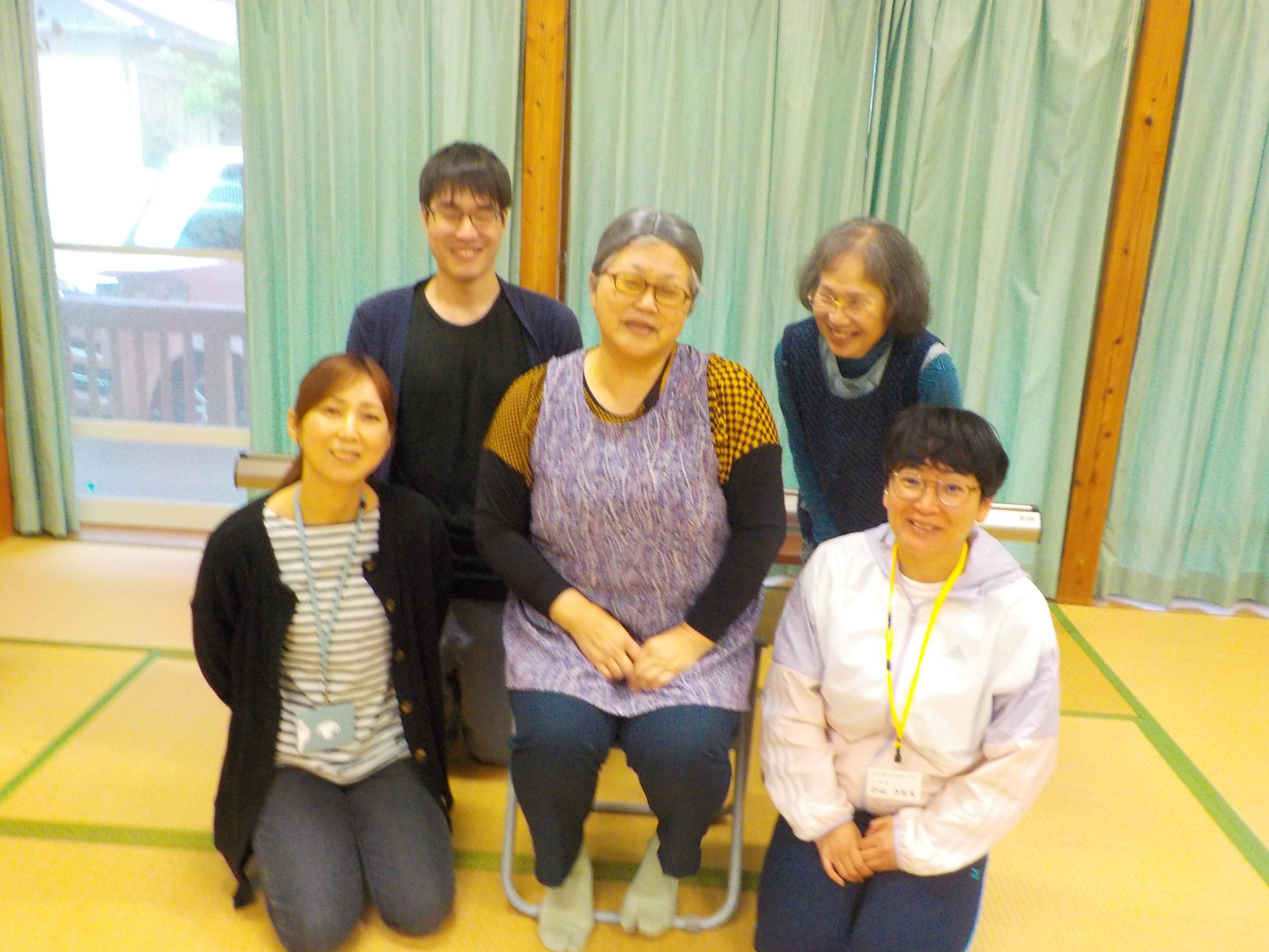 二日目は毎年恒例の益野ウシ江さんの協力の元、支援場面の演習を行いました。