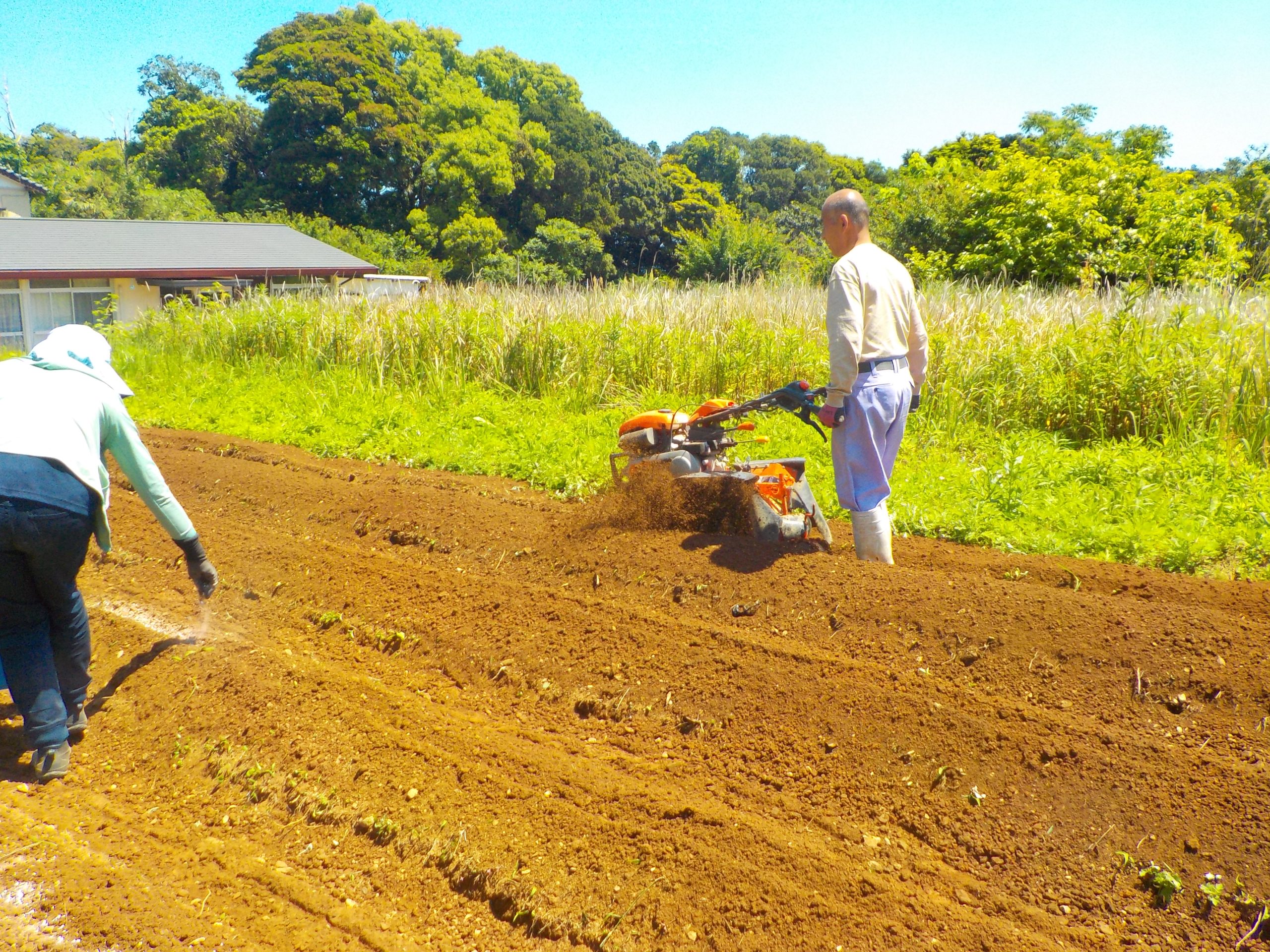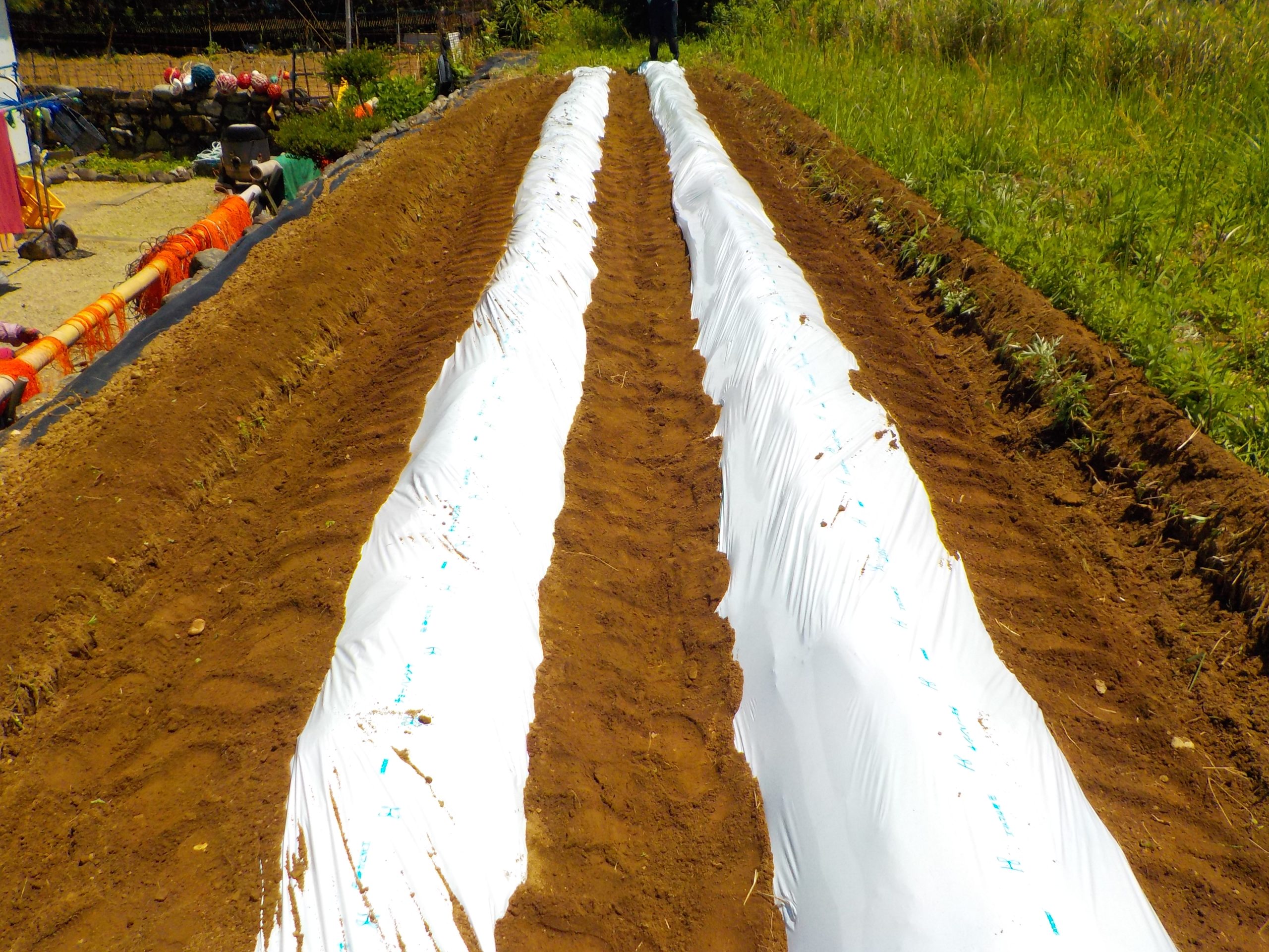 正会員の白浜農園さんが、福祉農園の畝立、マルチ張りを手伝ってくれました。