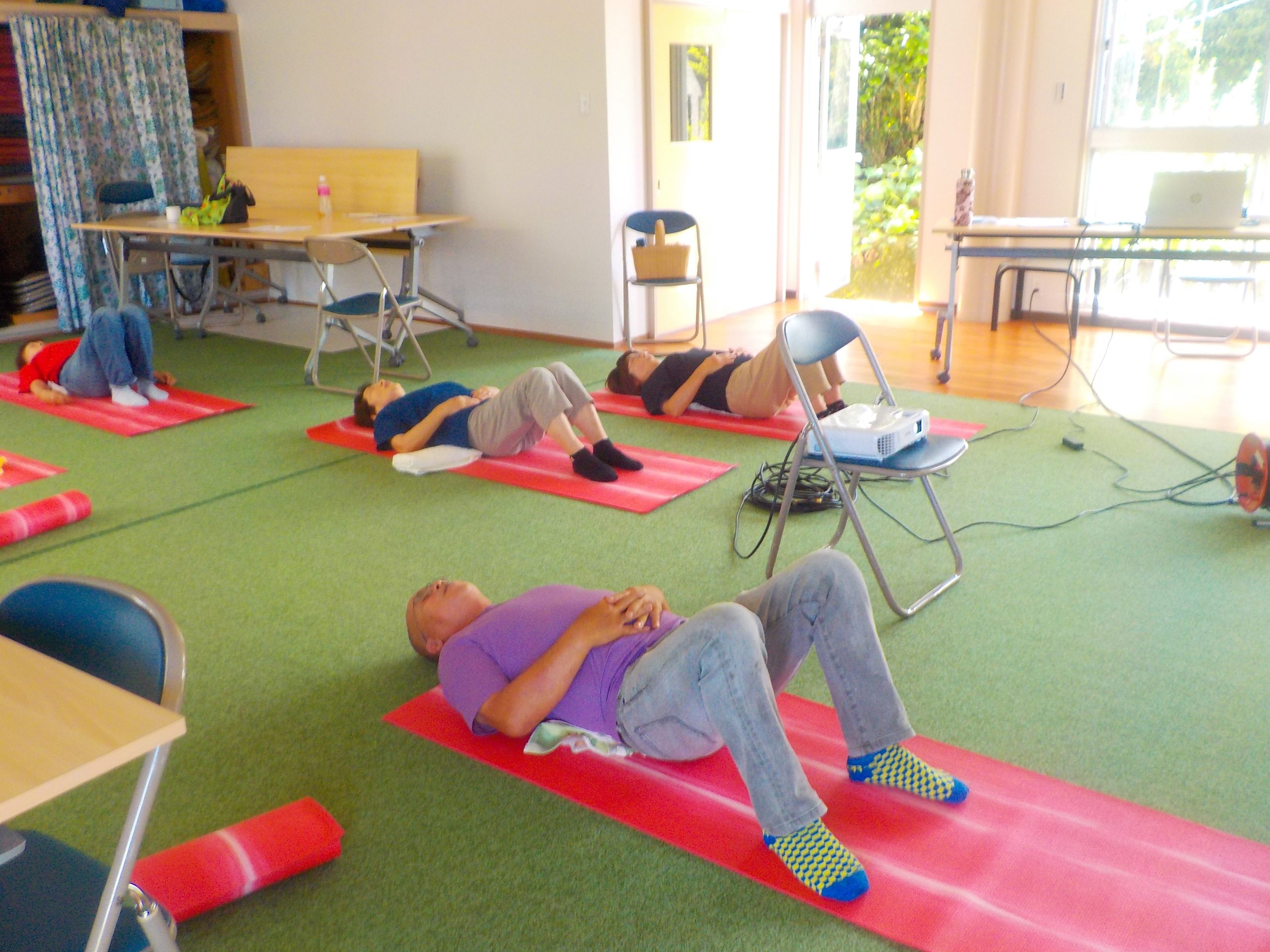 津呂は今までサポーターの派遣依頼が少ない地区です。そして参加者の方々は活発な方が多く、腰痛予防体操も元気に取り組んでいました。