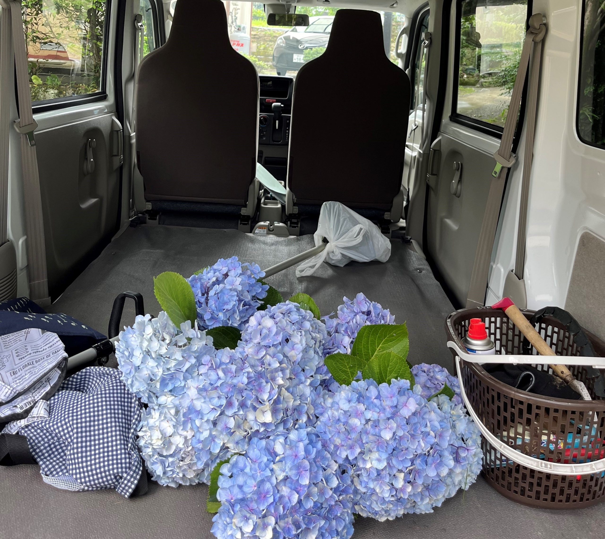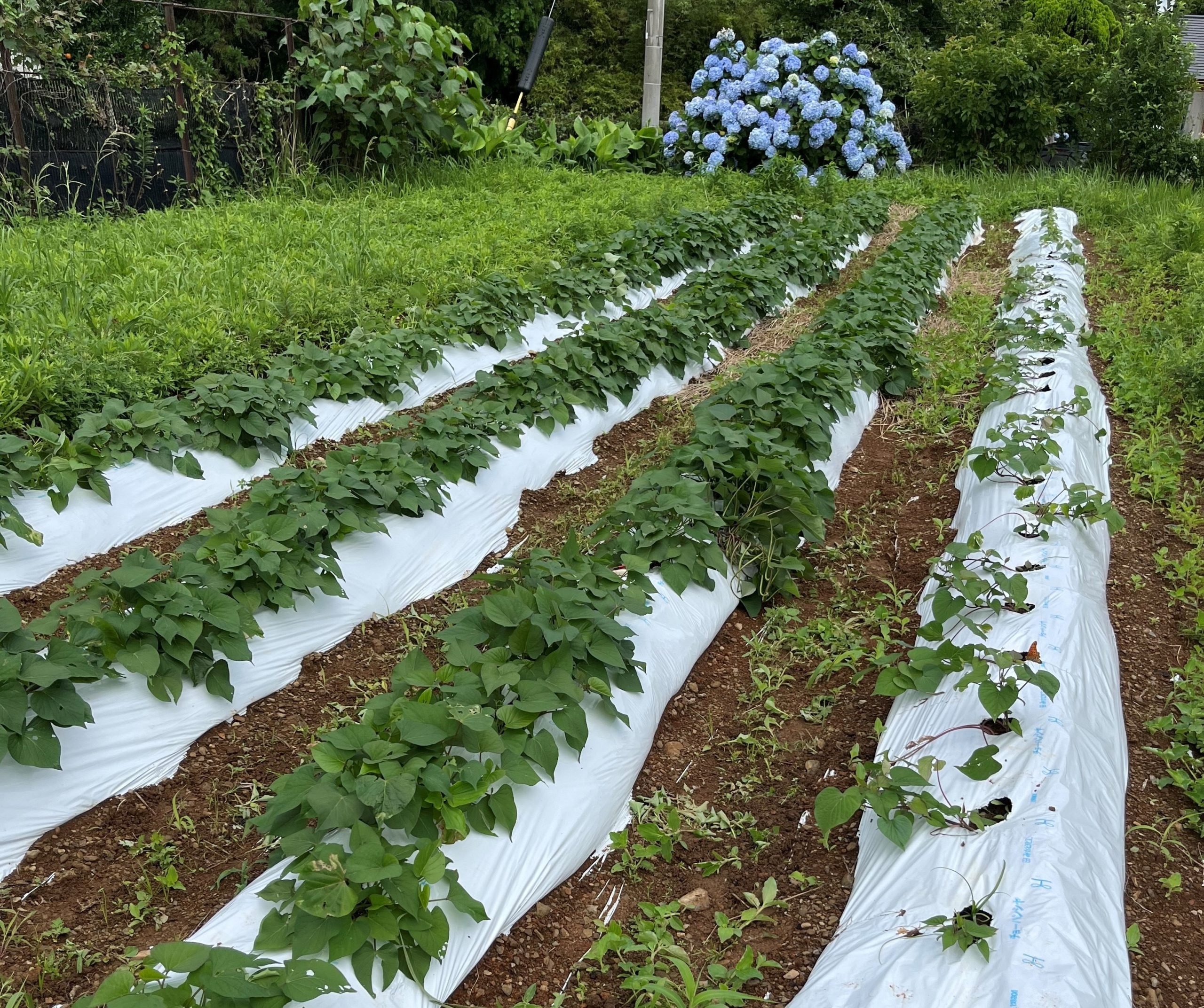 5月末、6月に植えた芋の苗が順調に育ってきました。 強い日差しに負けた葉っぱが一時期心配でしたが、復活していました。 農園の紫陽花は一つ一つが大きくて、きれいなのでたくさん持って帰りました。 梅雨が明けたら、また草刈りかな~