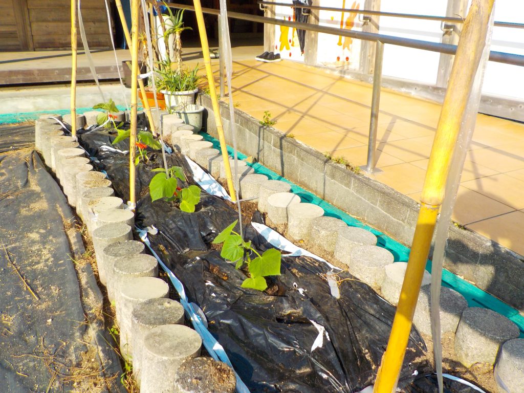 10/7(月)ふくしねっとCoCoてらすの庭に、会員の方からいただいたきゅうりを植えました🥒