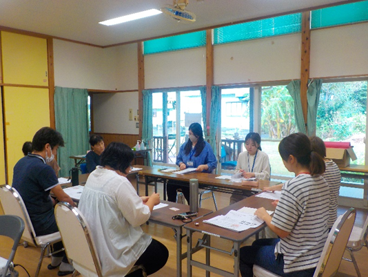 今回は高知県幡多福祉保健所から2名の方が来ており、1日目は法人や事業についての説明を受けた後、生活支援サポーターフォローアップ研修に参加してもらい、土佐清水市の現状やサポーターさんの活動のようすを熱心に学んでいました。