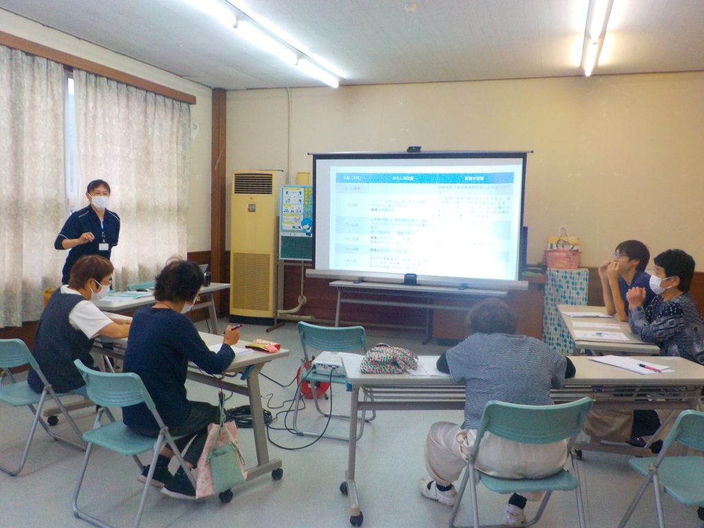 渭南病院から認知症看護認定看護師の仮谷沙智氏を講師にお招きし、「認知症についておさらい、変化や支援のポイント」というテーマでお話をしてくれました。また、長期記憶を活用した回想法を取り入れた傾聴体験では、幼少期の記憶を記述する作業に頭を悩ましながらも、いつの間にかペンを止め昔話で大盛り上がり。参加者からは、「その人のことを知るきっかけになる」との感想が聞かれました。支援員のみなさんこれからもよろしくお願いします!