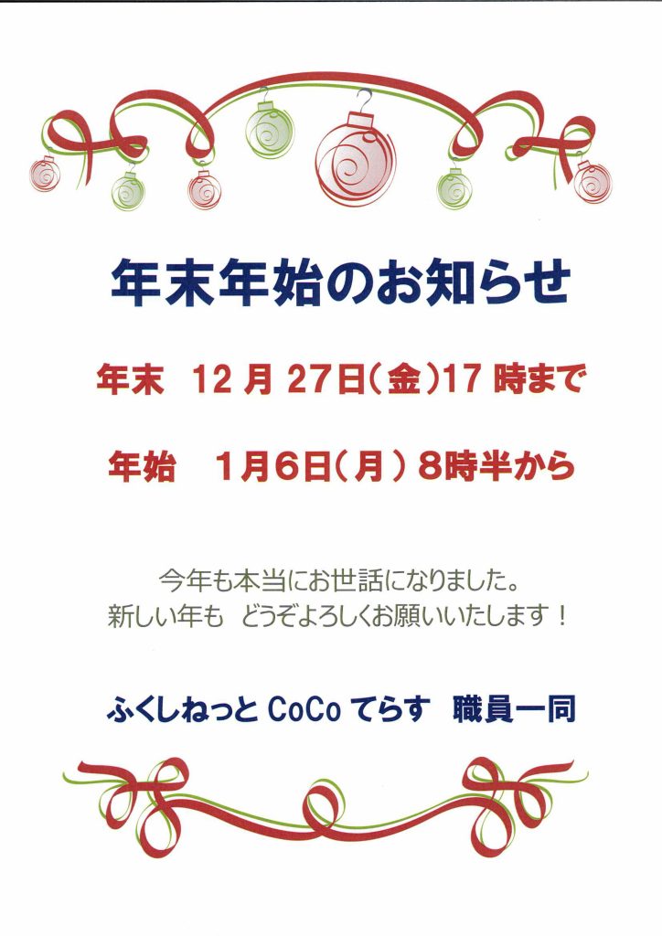 年末年始のお知らせ
