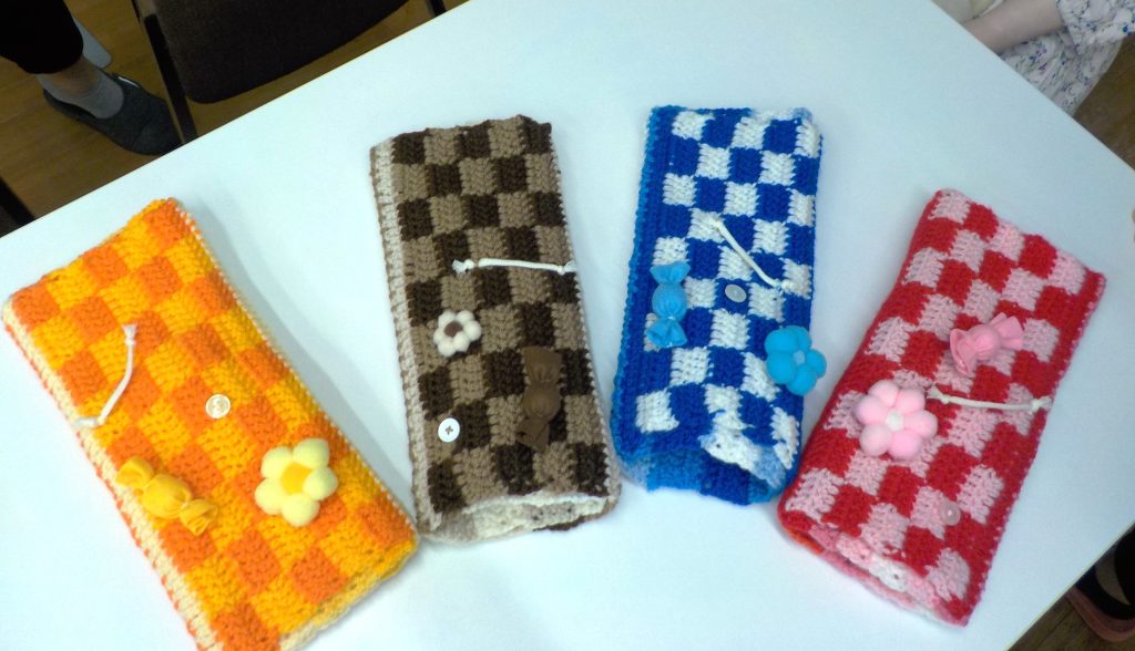いつもお世話になっている住民さんに、たくさんの素敵な認知症マフを作成していただきました。