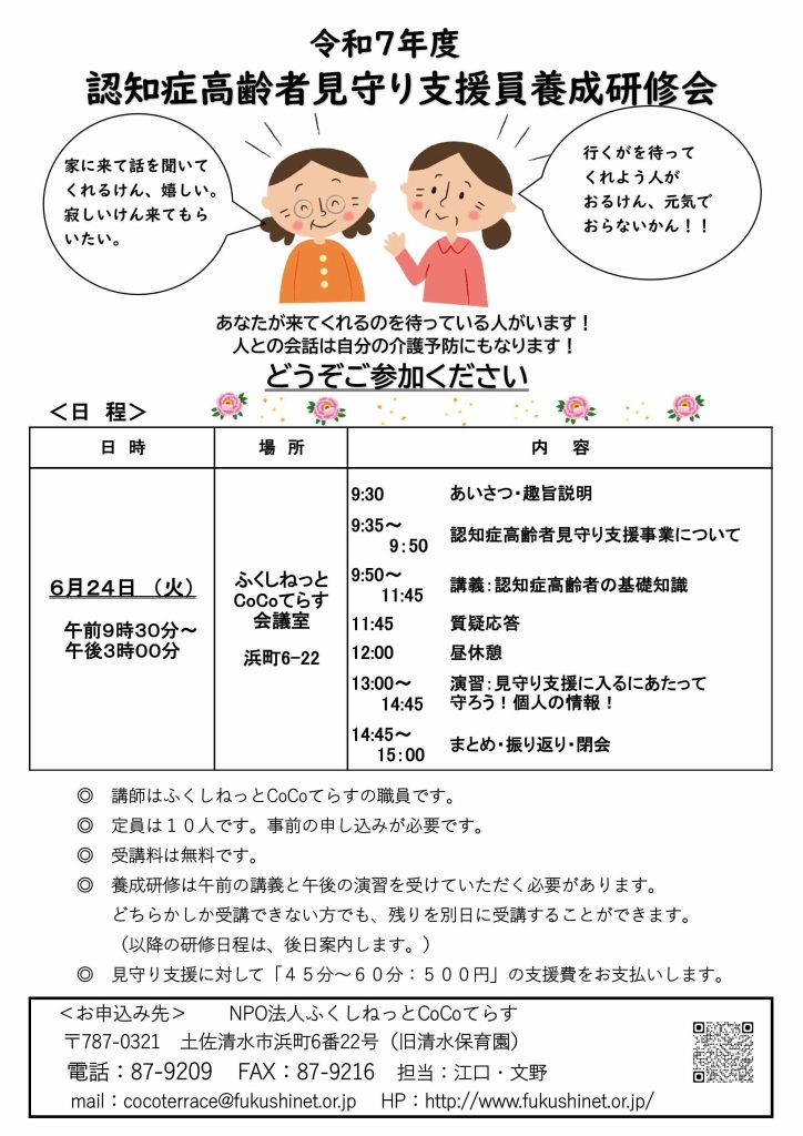 認知症高齢者見守り支援員養成研修会のお知らせ